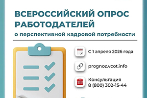 С 1 апреля 2026 года стартует Всероссийский опрос работодателей о перспективной кадровой потребности. Итоги исследования станут основой для обновления образовательных программ – они определят