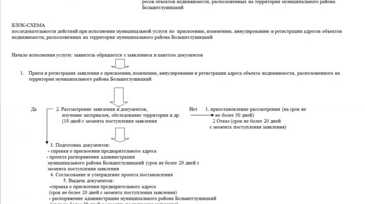 — постановление Администрации муниципального района Большеглушицкий по присвоению, изменению, аннулированию адреса объектам недвижимости, расположенным на территории муниципального района Большеглушицкий – не позднее 30 дней с момента приема и регистрации заявления.