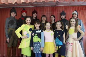 Младшая группа «Квадрата» также блистательно выступила с коллекцией «Каляки-маляки» по эскизам Насти Решетниковой и заняла 3 место в номинации «Костюм-реальность». Это яркие детские наряды из ультрамодного неопрена с веселыми аппликациями и росписью акрилом по ткани.