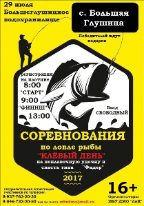 29 июля 2017 года на территории Большеглушицкого района впервые пройдут соревнования по рыбной ловле. Состязания организованы по 2 номинациям: ловля на поплавочную удочку и фидерная ловля, в каждой из которых будут определены победители (Самая крупная рыба и самый большой улов и прочее).
