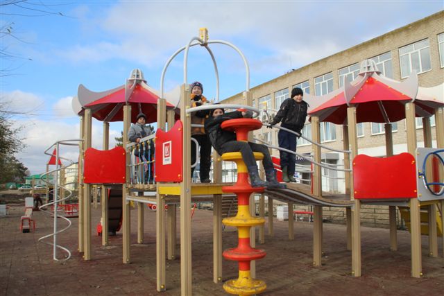 Каждый ребенок здесь сможет найти чем развлечься. Два ярких игровых комплекса радуют глаз. Для самых маленьких — удобные качели, карусели, качалка-балансир, горки. Для детей постарше — игровые комплексы.