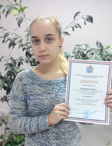 Ее наградили дипломом министерства образования и науки Самарской области и благодарственным письмом Самарской Губернской Думы.