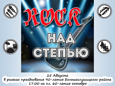 Новости 23.08.201823.08.2018 «Рок над степью» 25 августа 2018 г. в 17 часов вечера в селе Большая Глушица на площади 60-летия Октября пройдёт шестой по счёту межмуниципальный фестиваль рок-музыки. Положение о проведении VI межмуниципального фестиваля вокально-инструментальных ансамблей и солистов «Rock над степью» Анкета-заявка на участие в VI межмуниципальном фестивале вокально-инструментальных ансамблей и солистов «Rock над степью» PDF Анкета-заявка на участие в VI межмуниципальном фестивале вокально-инструментальных ансамблей и солистов «Rock над степью» docx