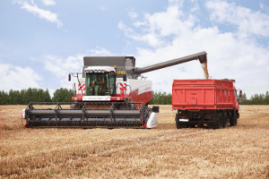 Жаркое утро, первая половина августа. В полях работает зерноуборочная техника. Поле деятельности у комбайнеров внушительное, в хозяйстве 18 тысяч гектаров пашни. Вот и снуют многотонные комбайны-подборщики вперед-назад, собирая зерно во внушительные бункеры. Наблюдая со стороны за работой комбайнеров, начинаешь понимать, как можно «смахнуть» 2-3 сотни гектаров за 1-2 дня. Ячмень уже скошен и лежит ровными валками. А на изготовке стоят “КамАЗы», ожидая, когда в них «польется» золотой поток зерна. За день приходится делать до десятка рейсов.