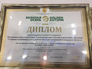 Особая гордость за сельское поселение Большая Глушица, прославившее наш район на всю Россию. Оно отмечено золотой медалью и дипломом за участие в конкурсе «За достижение высоких результатов в сфере устойчивого развития сельских территорий» в номинации «Формирование комфортной городской среды жизнедеятельности в сельских поселениях».