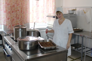 Вскоре Надежда вышла замуж и родила сына. И лишь когда тот подрос, решила вернуться к поварскому делу, устроилась в детский сад. «Хороший человек, исполнительный сотрудник, прекрасная женщина, отлично справляется со своими обязанностями. Пришла к нам еще молодой и неопытной. Бывало и такое, что пекли вместе блины, а сейчас она многому научилась» — так отзывается о ней заведующий детским садом О.П. Булковская. Пройдя двухнедельную стажировку с прежним сотрудником, осталась одна хозяйничать на кухне. И представить сложно, как ей удается все успевать! Суетливо хлопотавшую мы застали ее на рабочем месте во время приготовления обеда для малышей.