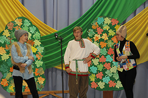 Два поколения артистов на одной сцене, талантливо исполнявших свои роли, единая общая концепция мероприятия, завязанная на сказочном повествовании — данная постановка стала замечательным подарком для публики. Самые маленькие артисты — Мансур Макаев и Полина Проскурнина — выступили в роли мышек. Гармонично смотрелись на сцене, проживая каждое мгновение вместе со своими героями, Владимир Рязанов (Иванушка), Антонина Ка- раблина (Баба Яга), Александра Рыжова (медведь Михаил Потапович), Елизавета Карнаухова (Кикимора), Анастасия Сульдина и Виктория Смолина (куры), Анна Комагорова (Шарик), Дарья Бугрова (Котофей Иванович). Да и взрослая часть коллектива — Т.А.Комагорова, В.И.Реминная, Н.М.Щербакова — были неподражаемы.