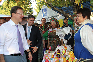 Хлебом-солью и приветственной песней встречал ансамбль русской песни «Радуйся» губернатора Самарской области Д.И.Азарова и высоких гостей.