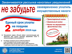 2 декабря 2019 года истекает срок уплаты имущественных налогов физических лиц