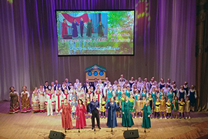 Картины были исключительно современные. Участники «Нашего театра» (руководитель И.В. Белоусова) в русских костюмах рассказывали о сегодняшнем дне родного степного края, его красоте и достопримечательностях.