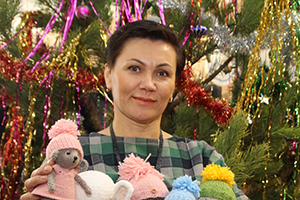 Руками нашей искусницы Оксаны Смолиной связано немало игрушек в новом направлении рукоделия — амигуруми (вязание маленьких игрушек крючком). Трудоемкое и кропотливое занятие увлекло ее совсем недавно, а первым в мир явился голубой зайчик, связанный из акриловой пряжи в подарок новорожденному внуку. А к новому году для внука она связала большого плюшевого мишку и мягкий комфортный плед. Сейчас у нее уже целая коллекция заек, мышат, в преддверии нового года спрос на них увеличился — их приобретают в подарок, бывает, что игрушки делает и на заказ в качестве презента.