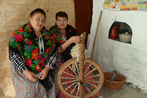 Ольга Ивановна подарила нам прялку и глиняный кувшин бабушки Анюты, в котором та делала дрожжи. Татьяна Алексеевна принесла бережно хранимые в семье вышитые салфетки, кружевные занавески и наволочки. Все вещи сделаны трудовыми руками Ярыгиной Ольги Федоровны. Об умелых руках Солдатовой Любови Николаевны напоминают вязаные коврики. Вечная память всем им.