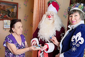 В поселке Кобзевка встреча старого нового года стала хорошей традицией. Работники социальной службы в этот день поздравляли своих подопечных с праздником. Пожилые люди были рады услышать добрые поздравления от Деда Мороза и Снегурочки.
