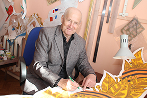 И вот спустя несколько лет востребованный художник перешел в отдел культуры на постоянную работу. Здесь по сей день он занимается оформлением сцены к мероприятиям в МЦК (РДК), пишет рекламные афиши в двух экземплярах. Вся работа выполняется им с нуля — сначала карандашом, затем красками. В целом процесс занимает пару дней, когда нужно выжидать время, пока подсохнет один тон перед нанесением следующего. Поэтому единственная сложность, которая может возникнуть в его деятельности — это нехватка времени, особенно когда одно мероприятие идет следом за другим.