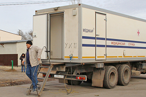7 октября в селе Большая Дергуновка работал передвижной флюорограф. В этот день все жители села проходили плановое обследование. Социальные работники отделения социального обслуживания на дому №3 не только своевременно проинформировали об этом своих подопечных, но и при поддержке главы сельского поселения В.И.Дыхно организовали подвоз получателей социальных услуг к мобильному флюорографу, сопровождали их на обследование, помогая подниматься по крутой лестнице.
