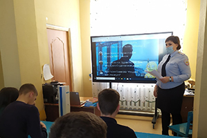 Инспектор АПиК ОМВД по Большеглушицкому району лейтенант внутренней службы Швецова Г.А. рассказала учащимся школ района о Нижегородской Академии МВД России и раздала памятки о преимуществах поступления в образовательные организации системы МВД.