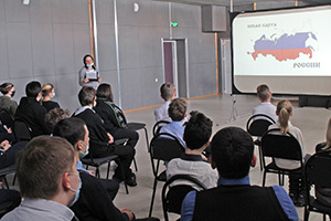 Вначале ребята просмотрели слайд-презентацию «Россия и Крым. Мы — вместе», где рассказывалось о достопримечательностях Крыма и об истории его присоединения к России.