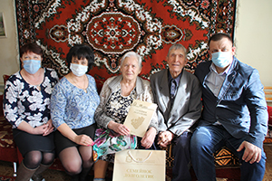 В рамках празднования 170-летия Самарской губернии сегодня в нашем районе чествовали юбиляров, отметивших 60-летие совместной жизни. Семьи из села Мокша — Александр Степанович и Валентина Сергеевна Поповы, Николай Алексеевич и Валентина Васильевна Таташины, из села Тамбовка — Станислав Анатольевич и Александра Петровна Резник. Тепло и сердечно бриллиантовых юбиляров поздравили председатель районного Собрания представителей Н.В.Назаров, глава сельского поселения Новопавловка В.М.Елистратов, специалист сельского поселения Мокша Г.П.Киреева и начальник отдела ЗАГС м.р.Большеглушицкий Н.Н.Желнова, вручив поздравительный адрес и памятный подарок от губернатора Самарской области Д.И.Азарова и сельских поселений.