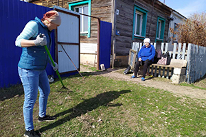 Сейчас, когда после морозной и снежной зимы наступила теплая весна и повсюду стал виден мусор из зарослей засохшей травы, пришло время наводить порядок. В рамках акции социальные работники организовали уборку территорий, прилегающих к домам получателей социальных услуг. Они сгребали сухую листву во дворах подопечных, убрали сушняк, разровняли граблями землю и организовали вывоз мусора.
