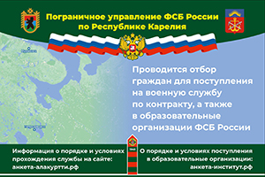 Пограничное управление ФСБ России по Республике Карелия проводит отбор граждан для поступления на военную службу по контракту, а также