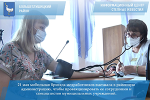 Сделать прививку от COVID-19 без отрыва от работы — эта практика набирает обороты в Большеглушицком районе. 21 мая мобильная бригада медработников выезжала в районную администрацию, чтобы провакцинировать ее сотрудников и специалистов муниципальных учреждений.