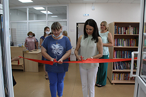 Право перерезать красную ленту и открыть обновленное библиотечное пространство было предоставлено первому заместителю главы района И.В.Куликовой и руководителю управления культуры М.Е.Боряковой.