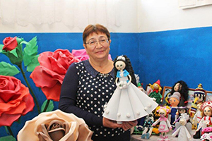 По долгу службы со своими музыкальными номерами выезжает на межрайонные и межпоселенческие фестивали, где и проходят декоративно-прикладные выставки. Там она и выставляет свои поделки. На все это уходит немало сил, но для творческого человека главное — видеть результат своего труда, чтобы созданная красота радовала, в первую очередь, окружающих.