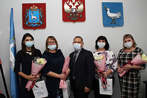 Результатами плодотворной работы форума женщины поделились с главой региона. А в заключение сегодняшнего онлайн-мероприятия Дмитрий Игоревич в Правительстве Самарской области вручил цветы и знак отличия «Материнская доблесть» восьми женщинам. В это время торжественная церемония награждения прошла и в администрации района — глава Большеглушицкого района В.А.Анцинов поздравил наших мам, подарив им букеты и памятные подарки.