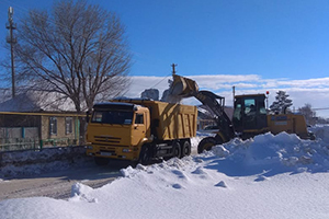В выходной, 13 февраля, работа с последствиями снегопада продолжилась. Занимались вывозом снежных масс с улиц с. Большая Глушица. 6 единиц техники: 2 погрузчика и 4 КамАЗа освобождали от снежных образований парковочные места от сетевых магазинов «Магнит» и «Пятерочка», магазина «Форум», перекресток ул.Гагарина и Красноармейской, пер. Песочный. Вывозили снежные кучи перед районной администрацией, детским садом «Одуванчик», общественной территорией перед кассовым пунктом.
