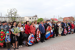 Хор ветеранов исполнил песню «Нас все меньше и меньше…», стихи о войне — от молодого поколения. В наших сердцах будет жить память — объявляется минута молчания. Трогательным было возложение цветов и венков к Монументу Славы от благодарных потомков.