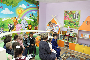 Перерезали ленточку. Юные школьники прошли в библиотеку, где их ждал сюрприз: новые яркие стеллажи, новые книги и сказочный герой — Домовенок Кузя. Дети поделились хорошим настроением, которое будет сохранено на долгое время.