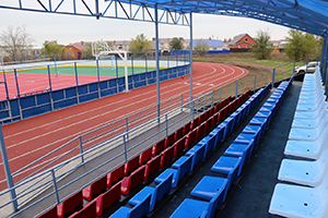 Здесь разместилась многофункциональная спортивная площадка, где можно будет играть в баскетбол, волейбол и мини-футбол, а также беговые дорожки, комплекс спортивных тренажеров и трибуны для зрителей. Это современное спортивное сооружение позволит нашим жителям регулярно готовиться здесь к выполнению нормативов испытаний (тестов) ВФСК ГТО, а организаторам качественно проводить тестирование населения.