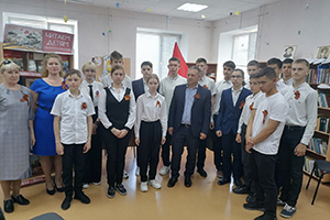 На мероприятие в нашу детскую библиотеку был приглашен глава района В.А.Анцинов. Он читал ученикам 8 класса Большеглушицкой СОШ №2 отрывки из произведения Александра Фадеева «Молодая гвардия». Ребята узнали об истории написания этого романа и после прочтения нескольких основных моментов приступили к его обсуждению. Познакомившись с проявленным мужеством героев произведения, школьники попытались сравнить их с современным поколением подростков и сделали для себя определенные выводы. Они поняли, какие чувства двигали сознанием ребят при совершении тех или иных поступков в столь юном возрасте.