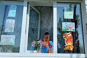 Оформили окна квартир и домов своих получателей социальных услуг детскими рисунками, картинками, фотографиями участников Великой Отечественной войны и надписями, посвященными Победе советского народа над фашизмом.