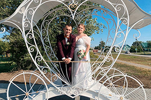 Сюрпризом для молодых стала фотозона — карета счастья. Здесь будут сделаны самые красивые фото на память. Создатель этого арт-объекта — Александр Лавриненко. Руками искусного мастера была создана такая красота.