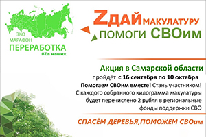 Акция будет проходить в виде соревнований между районами и городами Самарской области. С каждого собранного кг будет перечислено 2 руб. в региональные фонды поддержки СВО. Все участники акции будут награждены благодарностями и грамотами акции «Zдай бумагу – помоги СВОим». По результатам марафона будет составлен «Зеленый рейтинг» среди всех районов — участников.