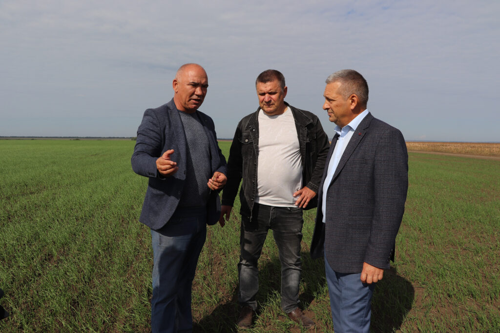 Как отметил Валерий Анатольевич, на территории нашего района продолжаются посевные и уборочные работы. Под озимыми культурами предусмотрены площади в 28 тысяч га. Все агротехнологии соблюдены, посеяли озимую пшеницу в хорошие погодные условия, поэтому и результат достойный. То, что мы видим, — неплохой задел под урожай будущего года. На соседнем поле идет уборка подсолнечника. Аграриям нашего района предстоит убрать более 60 тысяч га. Уже убрана четверть площадей. Средняя урожайность — 14-15 центнеров с га. Качество подсолнечника хорошее, техника подготовлена. Аграрии работают стабильно и с настроем. Надеемся, что все запланированные мероприятия по уборочным работам будут выполнены в срок.