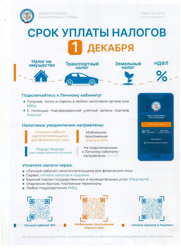 Срок уплаты имущественных налогов в 2025г. не позднее 1 декабря.