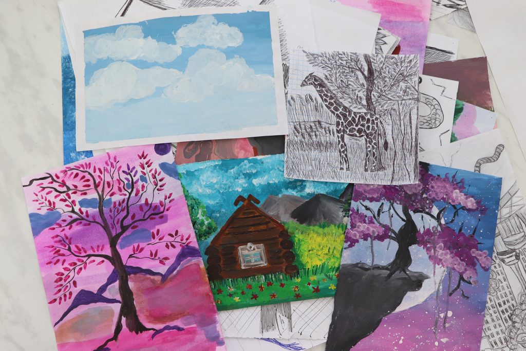 Композиции художниц все разноплановые: мультяшные герои, животные, природа, портреты и многое другое. Выпускницы в один голос утверждают, что за рисованием отдыхают, дают волю эмоциям, выплескивая свое настроение на бумагу, и нет границ их фантазии.