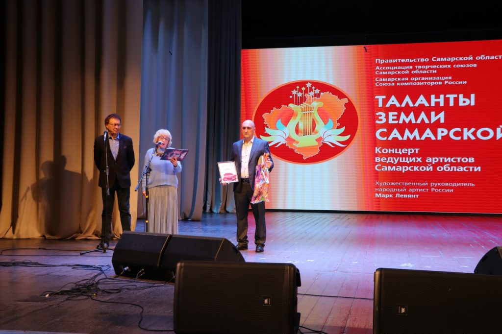 Ярким моментом этого вечера стала концертная программа «Таланты Земли Самарской», являющаяся знаковым брендом региона. Проект реализуется Самарской организацией Союза композиторов России под руководством Марка Григорьевича Левянта. На сцене выступили ведущие артисты Самарской области.