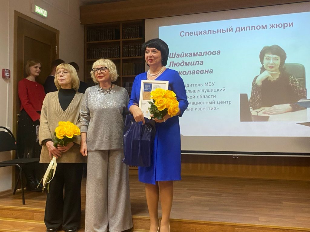 Специальным дипломом жюри в номинации «Журналистика» отмечена Людмила Николаевна Шайкамалова- руководитель МБУ м.р.Большеглушицкий Самарской области «Информационный центр «Степные известия» за публикацию «Святая к музыке любовь».
