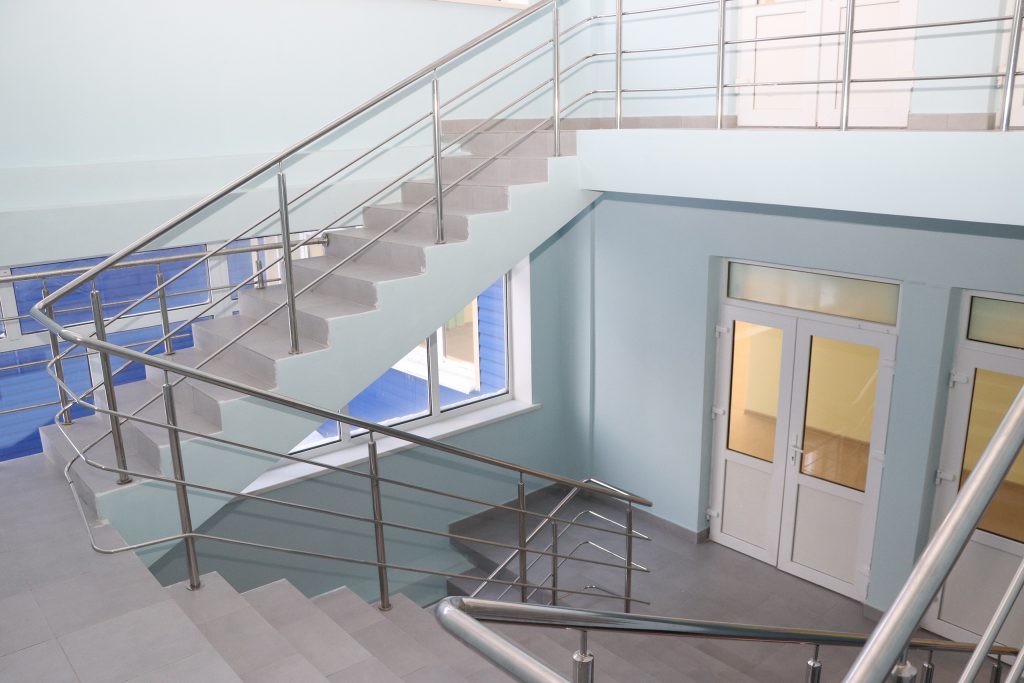 Сделано очень многое: ремонт кровли, покраска стен, монтаж подвесных потолков, укладка линолеума, облицовка керамической плиткой в санузлах и лестничных проёмах. Проведены модернизация систем внутреннего водоснабжения и канализации, электромонтажные работы, обновлена система отопления.