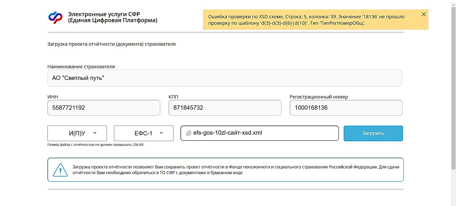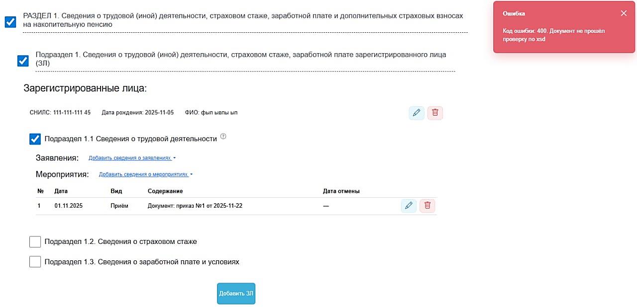 Рисунок 8– Возникновение ошибки по xsd после заполнения
