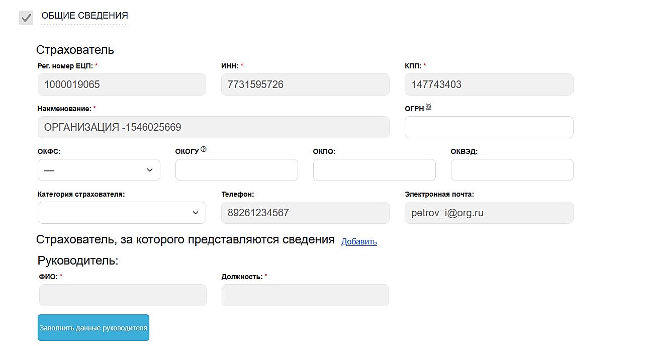 Рисунок 6– Заполнение полей в выбранных разделах отчета.