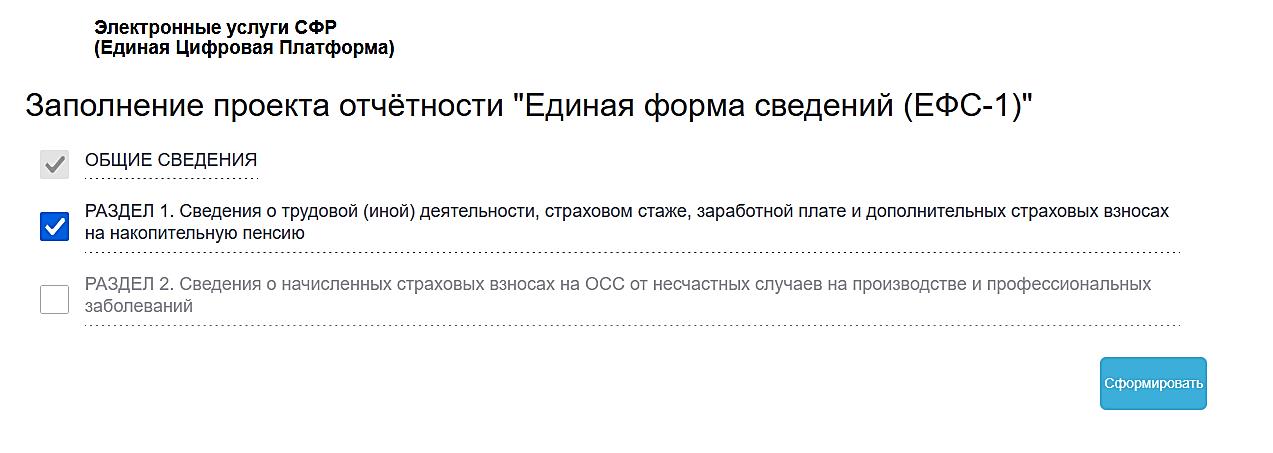 Рисунок 7– Выбор разделов для заполнения