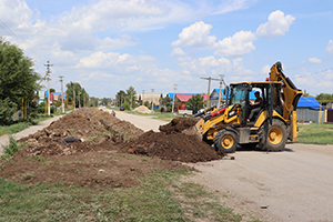 Полным ходом ведется замена центрального водопровода в с. Большая Глушица. Ремонтные работы идут на ул. Самарской, ул. Степана Разина, ул. Чапаевской. Старый железный