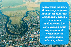 Уважаемые жители Большеглушицкого района! В этом году исполняется юбилейная дата со дня образования Большеглушицкого района. В связи с этим знаменательным событием предлагаем Вам пройти